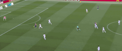 第38分钟,贝尔纳尔传球发生折射,奥尔莫破门,巴萨3-0塞维利亚