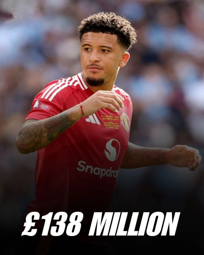桑乔的加盟,让曼联支付了7300万英镑的转会费。老板吉姆·拉特克里夫爵士去年抱怨说,虽然桑乔已经一年没为俱乐部踢球,而且之后一年也不会效力本队,红魔却还不得不为他支付给多特最后1700万英镑的分期转会费!
