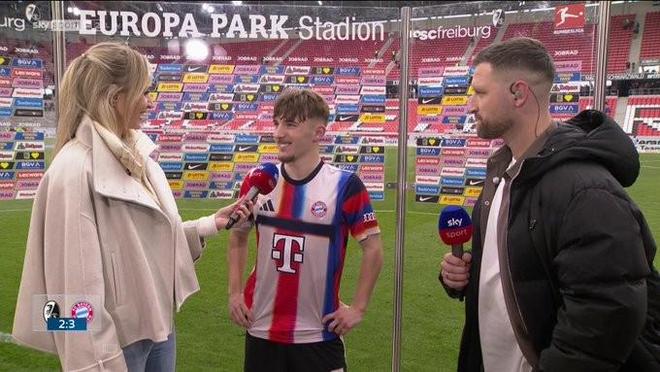 本赛季德甲第28轮,拜仁客场3-2战胜弗赖堡,18岁的伦纳特-卡尔上演1球1助,赛后接受了天空体育的采访。